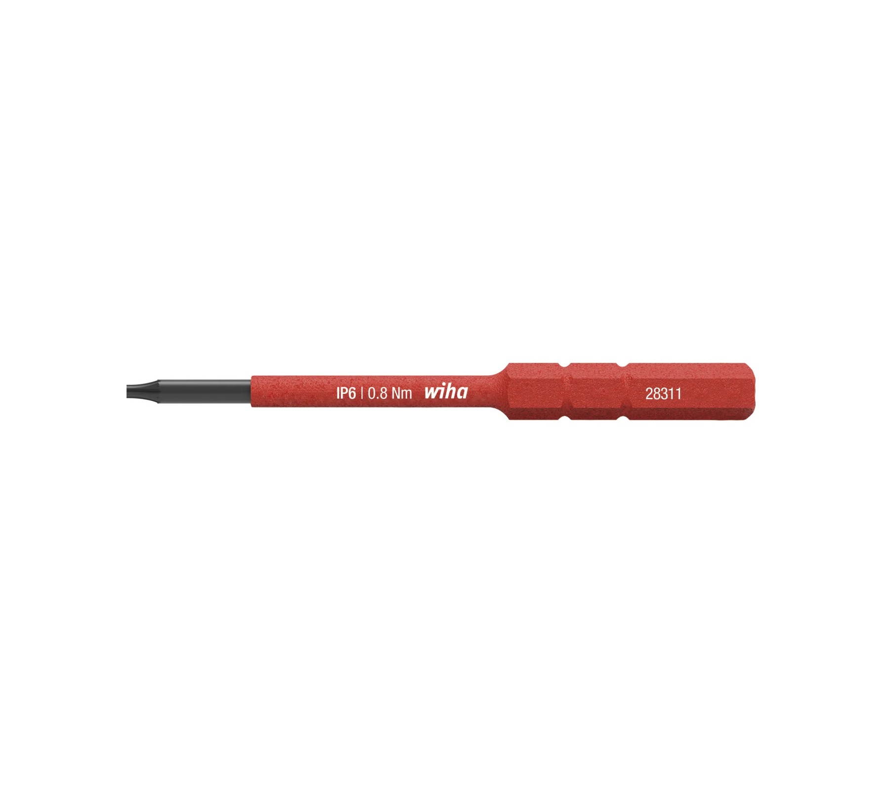 W połączeniu z produktami Wiha speedE®, slimVario® i TorqueVario®-S electric izolowane bity slimBit dzięki zastosowaniu autorskiej technologii „slim” firmy Wiha, opracowanej specjalnie do zastosowań elektrotechnicznych, umożliwiają również docieranie do głęboko położonych śrub i sprężyn. Jest to możliwe dzięki całkowicie zintegrowanej z bitem izolacji ochronnej, umieszczonej w jego przedniej części. Bity slimBit poddawane są kontroli jednostkowej zgodnie z międzynarodową normą IEC 60900 i umożliwiają bezpieczną pracę przy częściach znajdujących się pod napięciem do 1000 V AC.