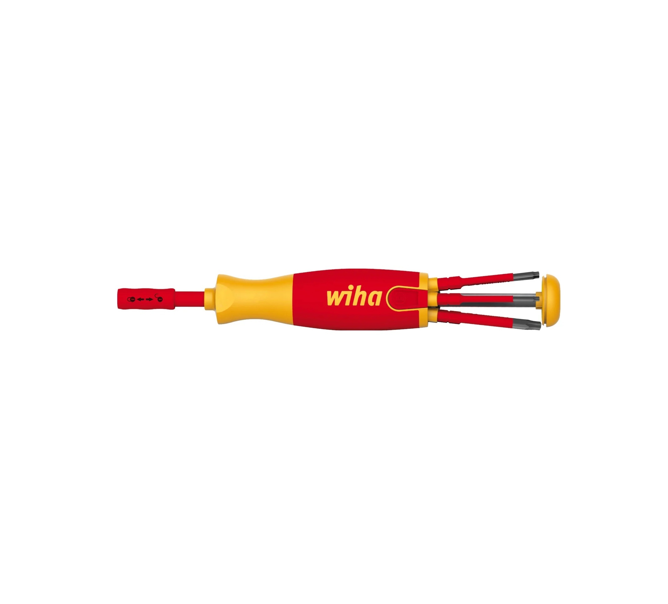 Wkrętak z magazynkiem bitów LiftUp electric jest idealnym pomocnikiem każdego elektryka w zastosowaniach mobilnych. Ukryty w rękojeści schowek na 6 najczęściej używanych bitów typu slimBit wysuwa się z magazynka po naciśnięciu przycisku. Ułatwia to znacznie wyjmowanie bitów. Wypróbowany uchwyt ClicFix mieści bezpiecznie wszystkie bity i niezawodnie je blokuje. Technologia ta czyni z magazynku bitów uniwersalny wkrętak. Również w zakresie bezpieczeństwa uchwyt na bity z magazynkiem zapewnia maksimum możliwości. Zarówno uchwyt na bity z magazynkiem, jak i wchodzące w jego skład bity typu slimBit posiadają certyfikat zgodny z międzynarodową normą IEC 60900. Smukłe bity typu slimBit o długości 75 mm umożliwiają dzięki całkowicie zintegrowanej z przednią częścią izolacji ochronnej doskonały dostęp do głęboko osadzonych zacisków śrubowych lub sprężynowych. Kolejnym plusem jest obrotowy kapturek, który zapewnia komfort użytkowania wkrętaka.