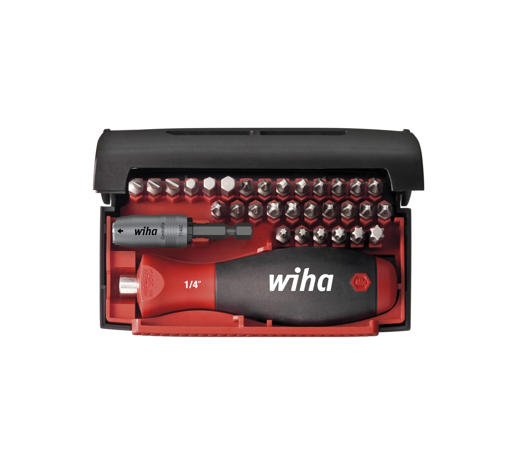 - 1x Uchwyt na bity CentroFix blokowany mechanicznie 1/4″, magnetyczny 60 mm (39133)